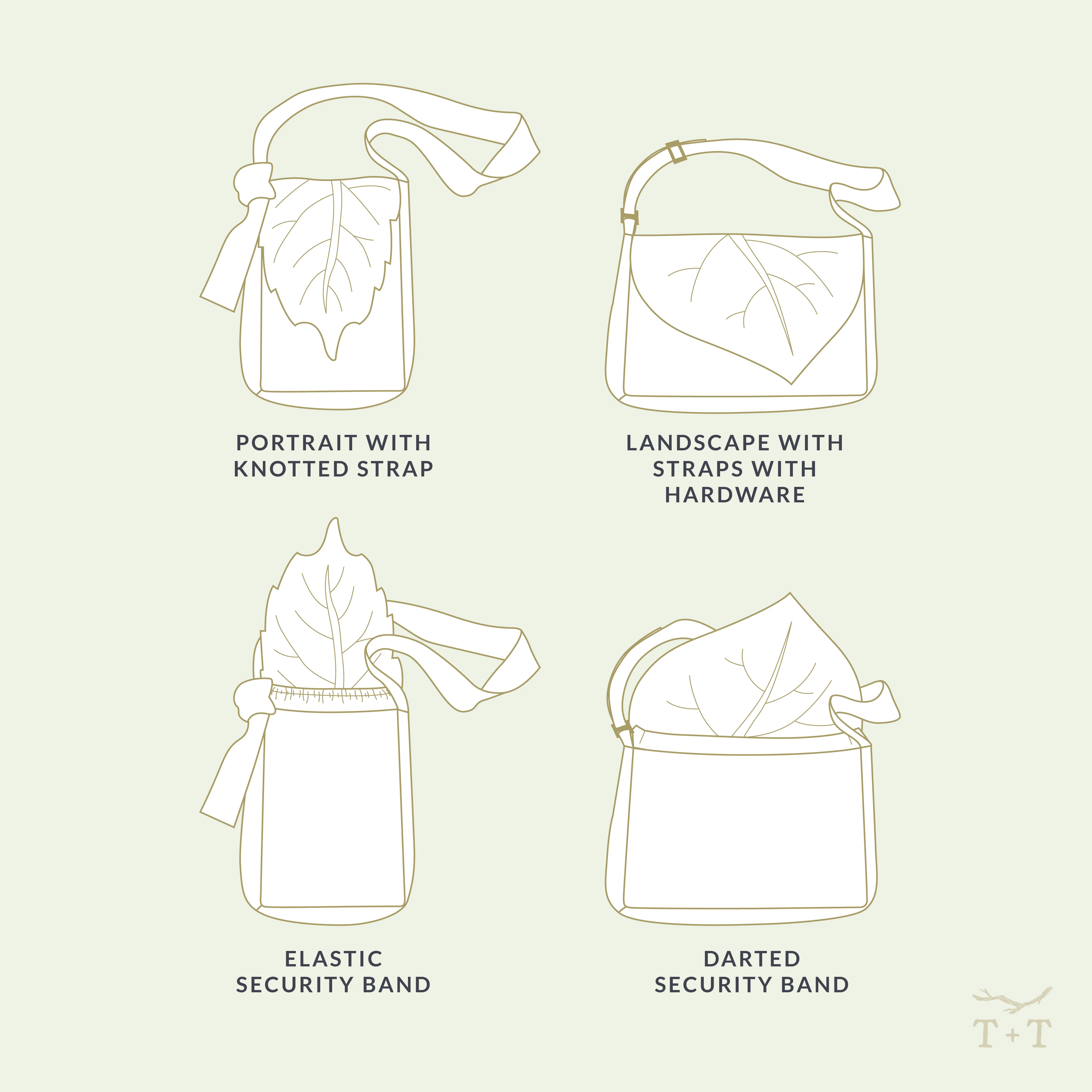 - Knotted strap or adjustable hardware