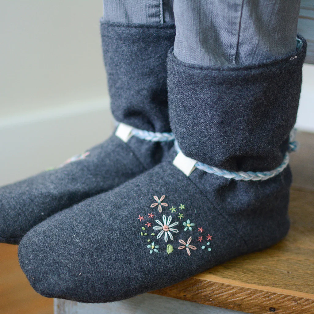 Sew some cosy slipper boots to keep feet snug and warm this winter. These simple-to-sew yet impressive boots are bound to delight! The fully lined, wide toe box design ensures comfort with no scratchy seams exposed. Soles can be made from leather/suede.